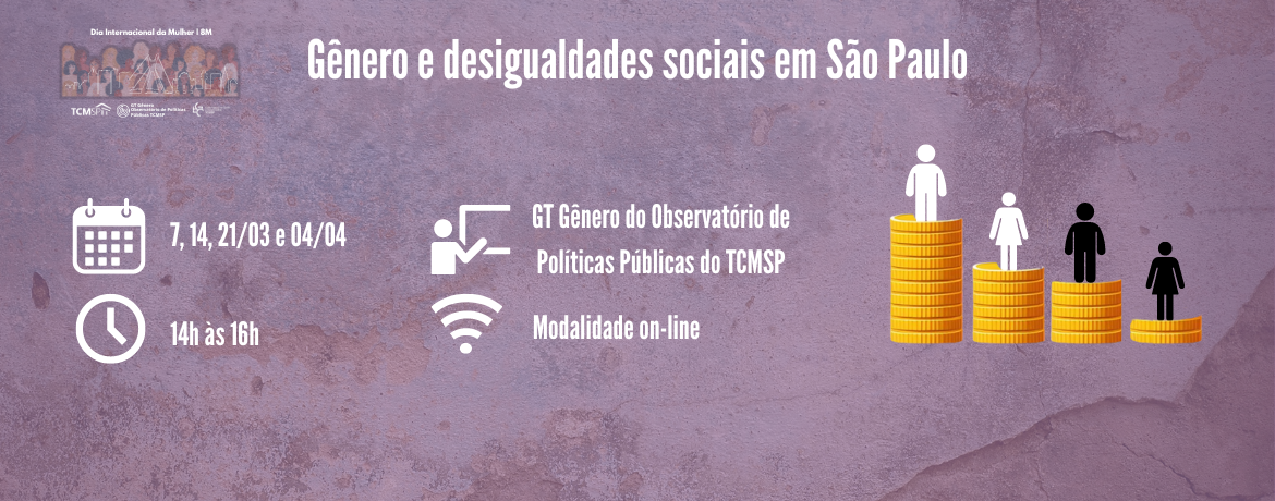 A Escola Superior de Gestão e Contas Públicas (EGC) oferecerá o curso de extensão, na modalidade on-line, “Gênero e Desigualdades Sociais em São Paulo”. Apresentado por integrantes do Grupo de Trabalho Gênero do Observatório de Políticas Públicas do Tribunal de Contas do Município de São Paulo (TCMSP), o curso discutirá as principais questões relacionadas às várias manifestações de desigualdades, tendo como referência o corte de gênero. Serão explorados assuntos como feminismo, masculinidades, violência de gênero, mercado de trabalho, políticas públicas e movimentos sociais, entre outros.