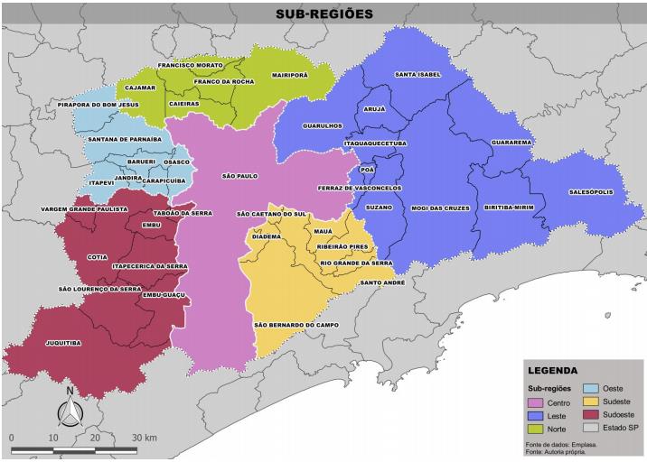 A Região Metropolitana de São Paulo (RMSP) foi criada em 1973 e reorganizada em 2011. É o maior pólo de riqueza nacional, sendo responsável por mais da metade do PIB do Estado de São Paulo e 20% do PIB do país com 10,2% da população (censo de 2010). Ao todo são 39 municípios que a compõe a RMSP.